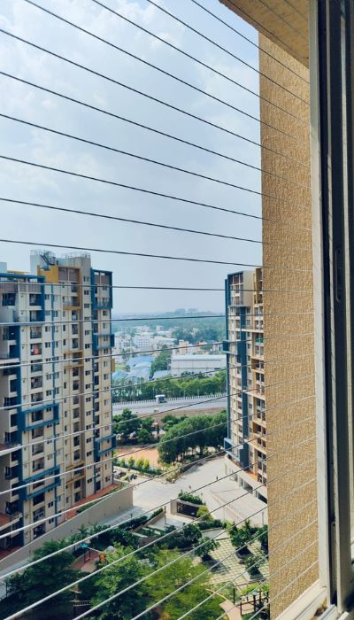 Secure your space with SR Safety Nets Pigeon Safety Nets and stylish cloth hangers. Contact us for installation!